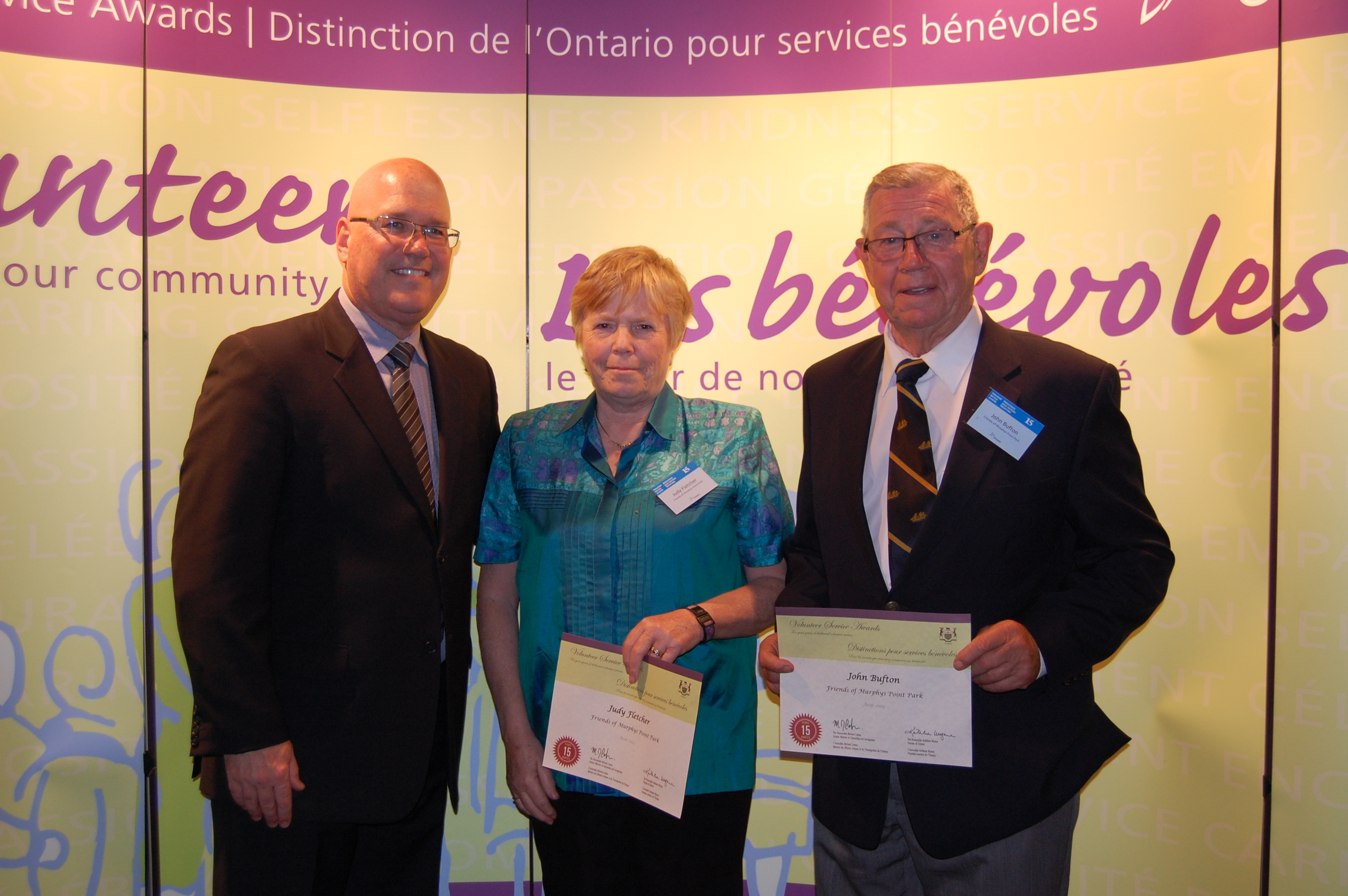 Two long-time Friends volunteers received provincial recognition recently as part of the 2013 Ontario Volunteer Service Awards.