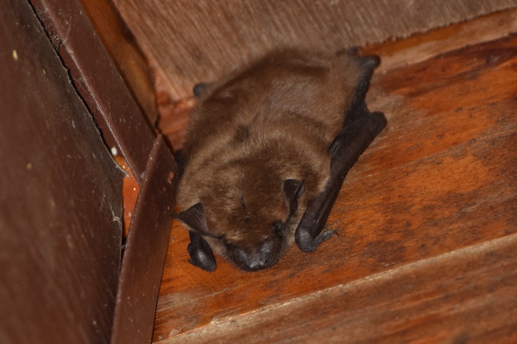 This week our featured #SpeciesOfTheWeek is the Big Brown Bat (Eptesicus fuscus). These nocturnal insectivores use echolocation to feed on things like moths, caddisflies, beetles, and flies. The Big Brown Bat is the most common bat species in Canada and, with a wingspan of up to 40cm, one of the largest. They range from southern Canada to central America and are highly adapted to living in cities where they roost in cavities, buildings and under the bark of trees. Although this species is not threatened, it is still under pressure from human activities such as pesticide use which kills their food source, and from a fungal disease called white-nose syndrome. During the winter, the Big Brown Bat hibernates inside houses, barns, caves, tree cavities or rock crevices; often these sites are located less than 80 km from their summer roosts. This particular bat was sighted at the staff house at Murphys Point. Have you spotted any bats flying around the campgrounds in the evening here at the park?