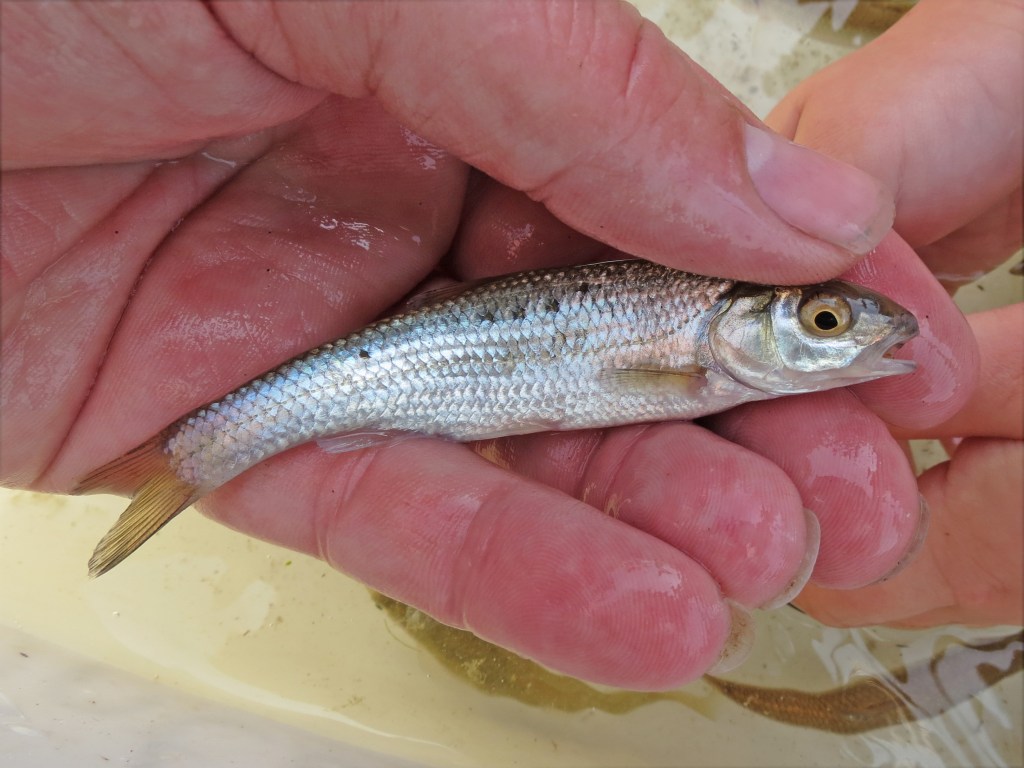 This week’s #SpeciesOfTheWeek is the Fallfish (Semotilus corporalis). Fallfish are one of the largest minnow species in North America, reaching over 40cm in length. Often mistaken for Creek Chub, the body of an adult is olive to golden-brown with dorsal fins that are darker. There is also a dark stripe along the dorsal line. Their native range is eastern Canada and northeastern North America; Murphys Point Provincial Park lies at the northwestern edge of their range. The preferred habitat of Fallfish are streams with a shallow gradient and accompanying slack pools, though the young prefer streams with a faster flow. They can tolerate temperatures between 6℃ and 27℃ but when temperatures fall below 15℃, Fallfish cannot spawn. Young fallfish feed primarily on fly larvae and other zooplankton; once they reach about 10cm in length, they change over to the adult diet of small fish (including their own young), as well as fish eggs and insects. This individual was caught in Hogg’s Bay.