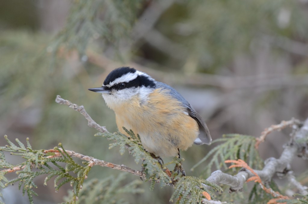 These cute little birds are plump with a short tail and long bill along with a beautiful blue-gray back and rusty orange underside. They are always cheery and a treat to see in the winter! You may see them dextrously scaling up and down trees or hear their call which sounds like nasal laugh! They prefer conifer forests so watch for them around areas with lots of pine trees. They are found in the park year round but are typically more conspicuous in the winter, especially in years with lots of cones like this year!
