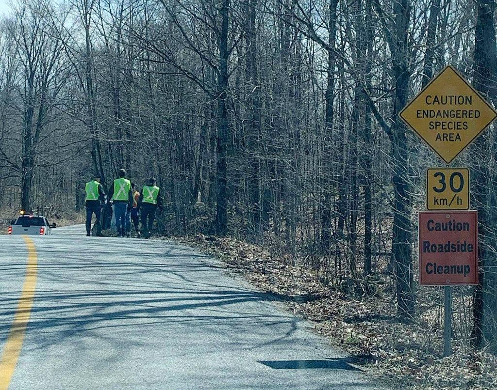 A huge thank you to our team of volunteers (Steph, Brian, Sam, Derek Z, Peter and Derek N) who took part in the Spring Adopt-a-Road event today! Several bags of garbage and recyclables were collected, along with an old tire, car battery, pieces of metal and more along the 3.5km of County Road 21 that passes through the park (that’s 7km when you’re walking each side!). Thanks also to Superintendent Curtis Thompson and Assistant Superintendent Mark Read who kept the crew safe with vehicles in front and behind.