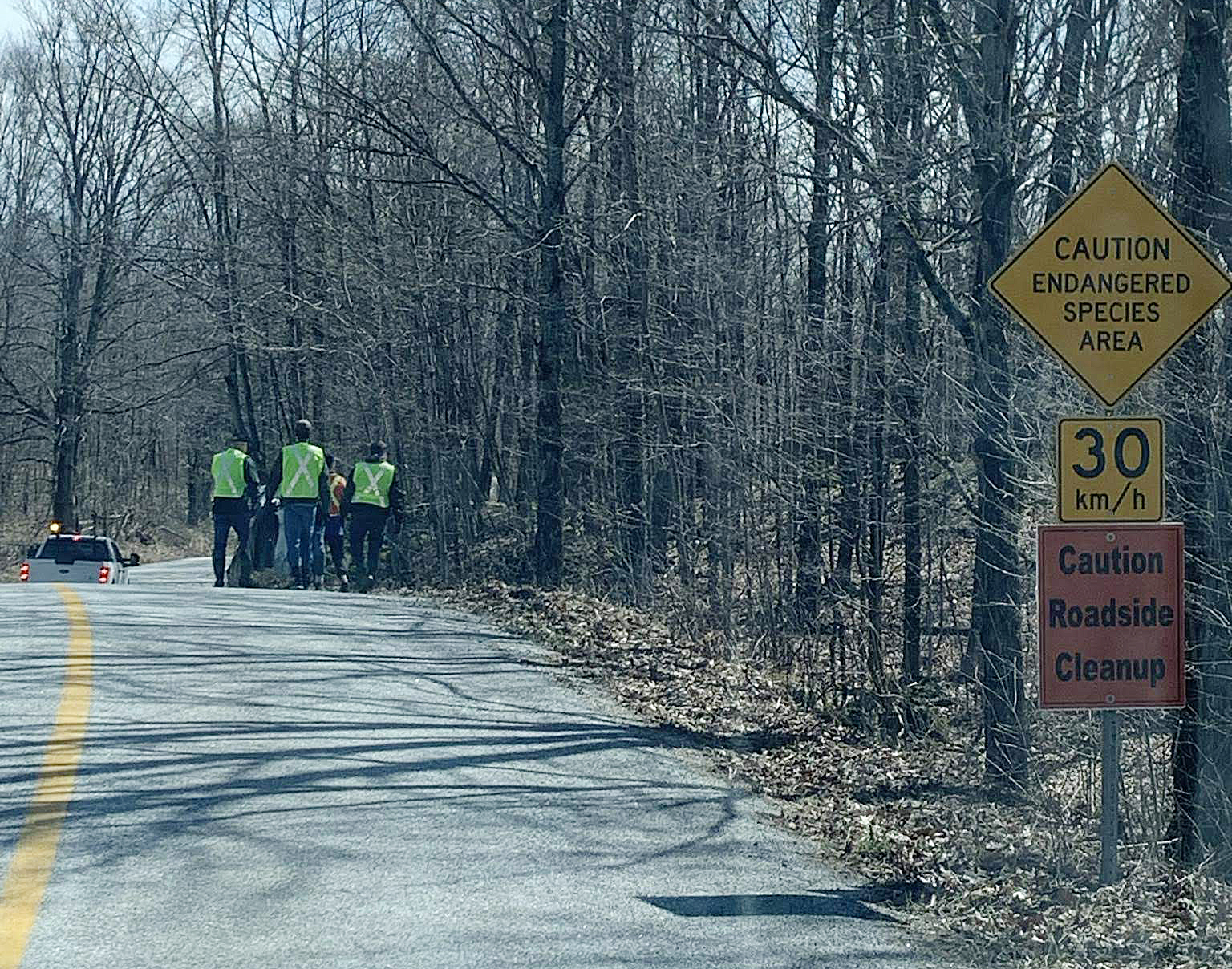 A huge thank you to our team of volunteers (Steph, Brian, Sam, Derek Z, Peter and Derek N) who took part in the Spring Adopt-a-Road event today! Several bags of garbage and recyclables were collected, along with an old tire, car battery, pieces of metal and more along the 3.5km of County Road 21 that passes through the park (that’s 7km when you’re walking each side!). Thanks also to Superintendent Curtis Thompson and Assistant Superintendent Mark Read who kept the crew safe with vehicles in front and behind.