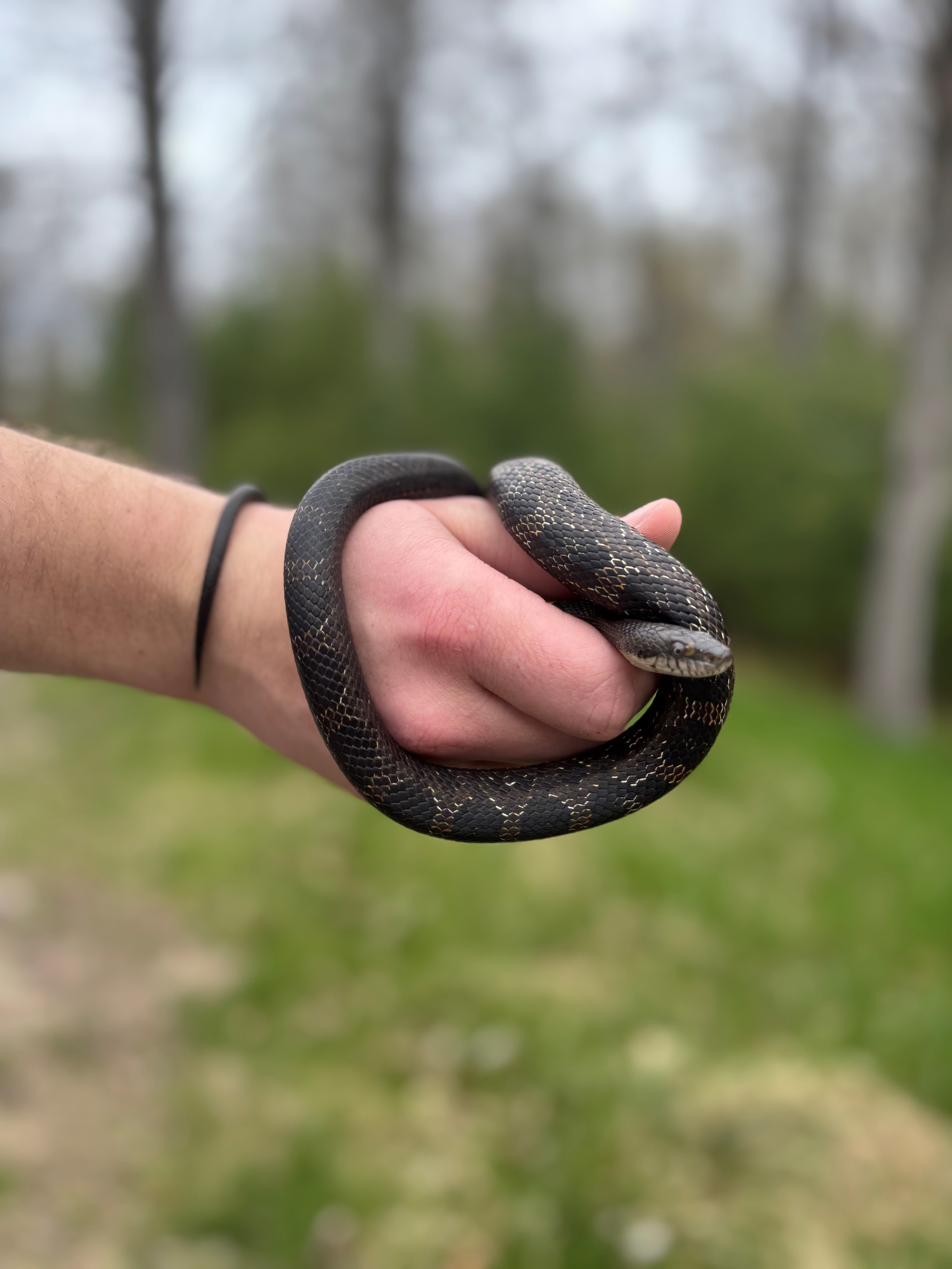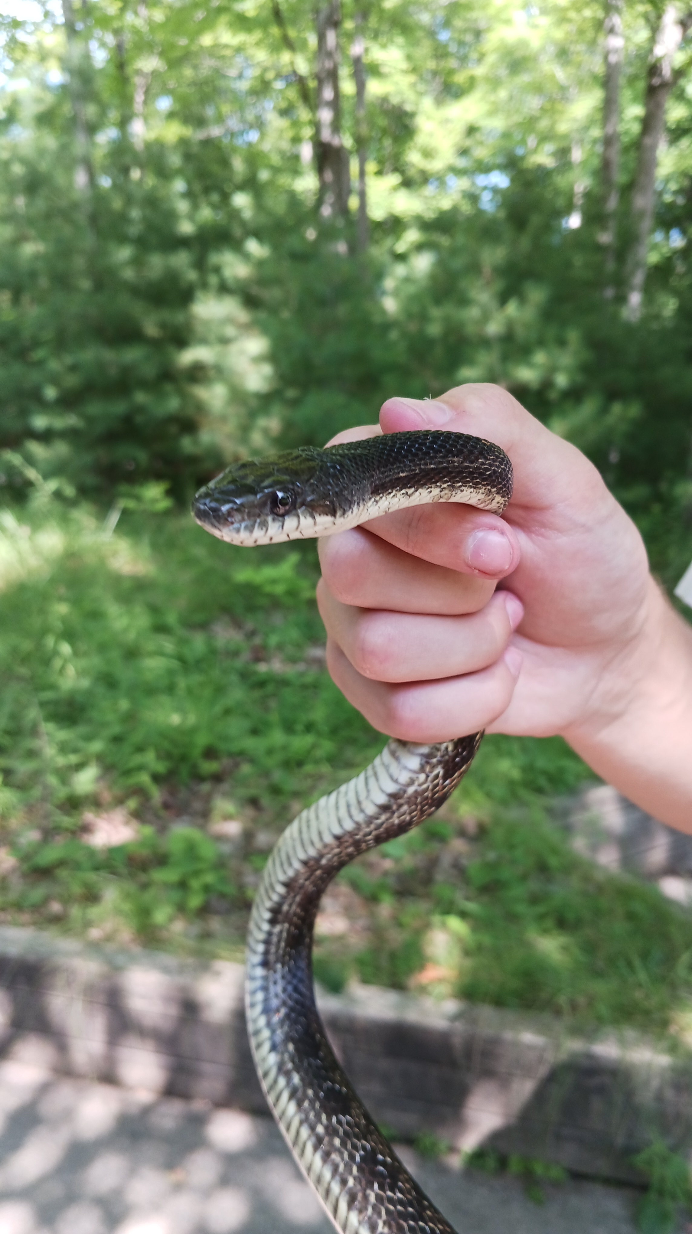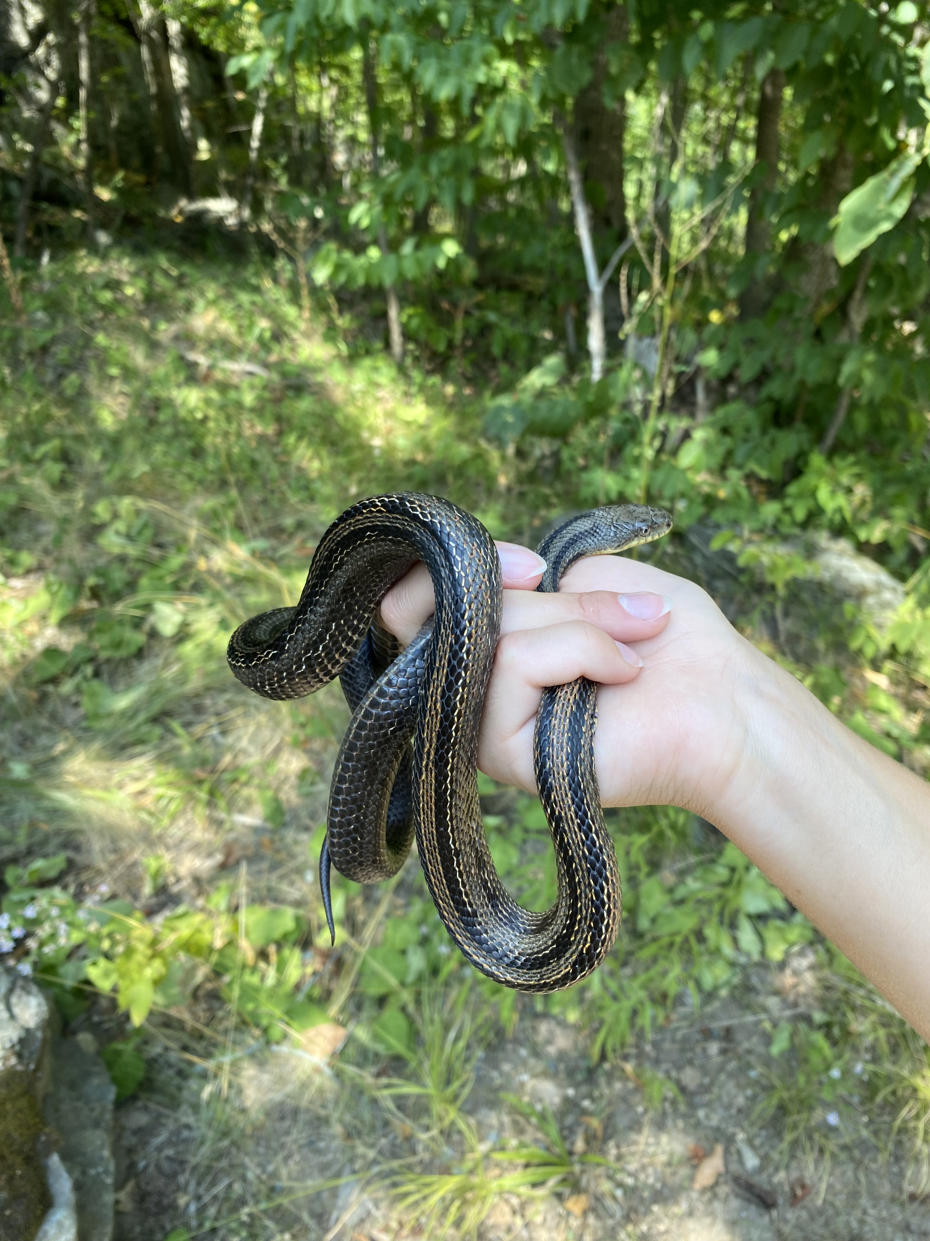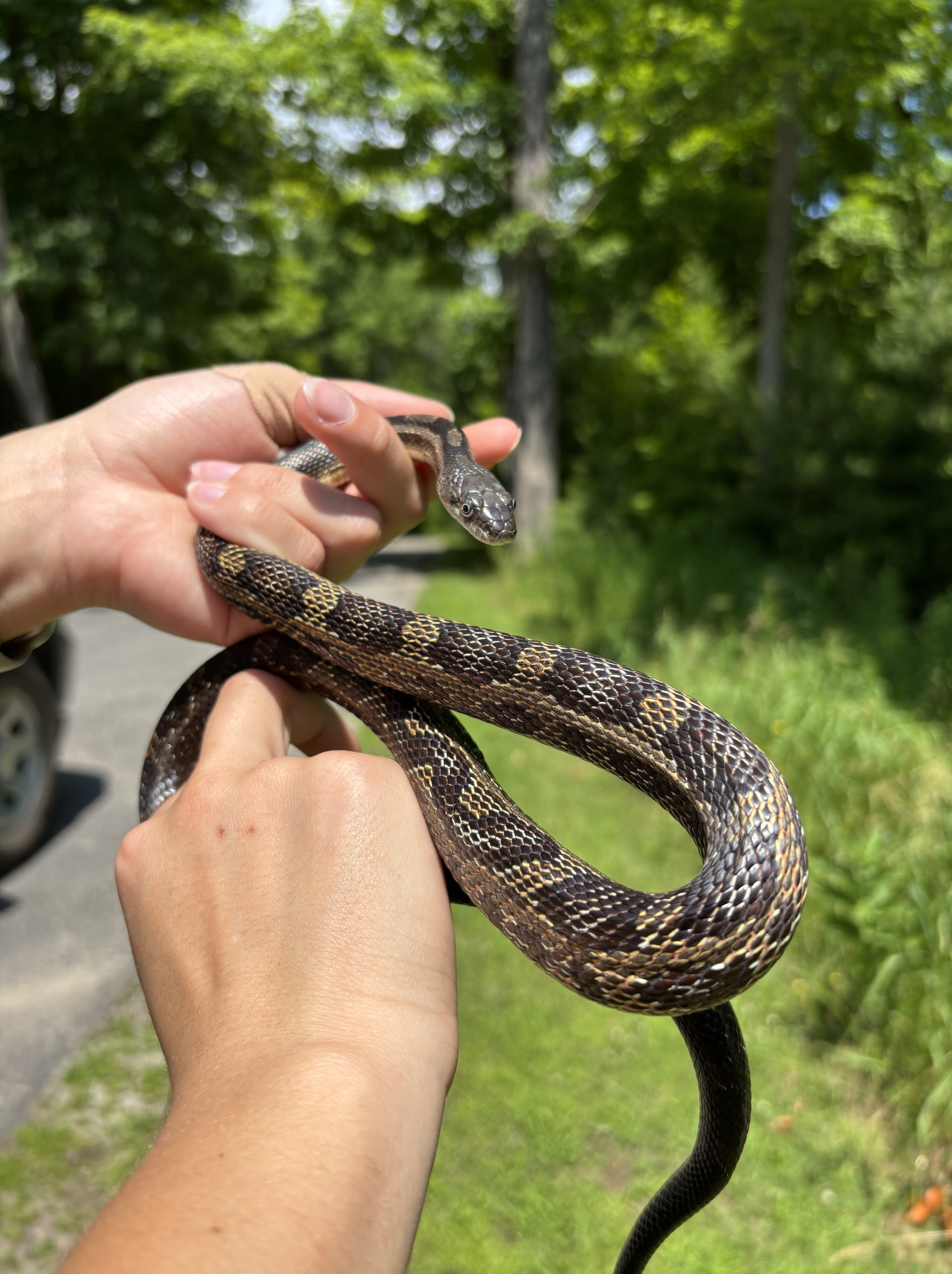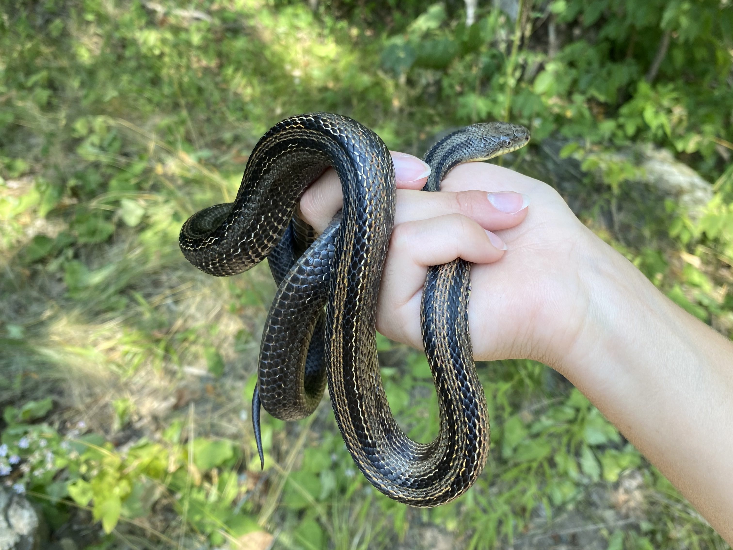 This male snake was found by campers at our group camp area on July 21, 2025. He weighed 205g and measured 105.25cm. He was a very wiggly but also a very polite snake when we picked him up.