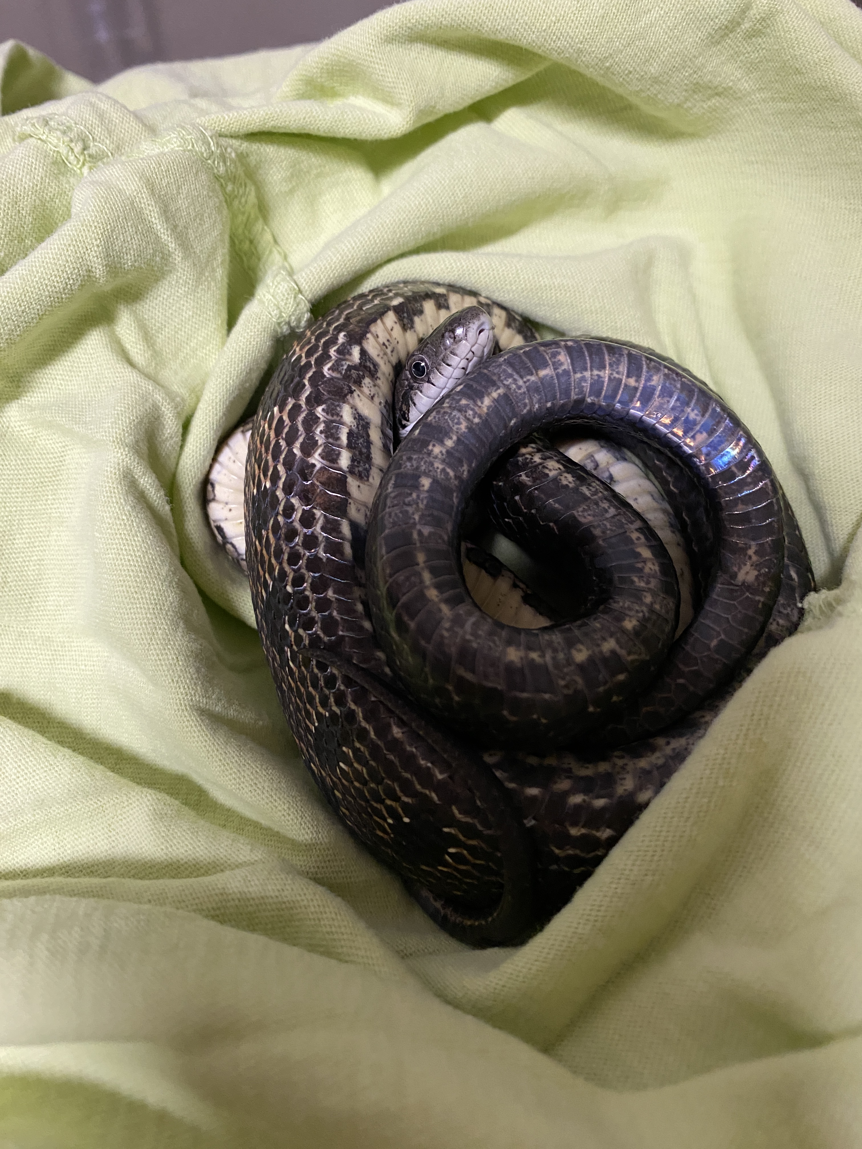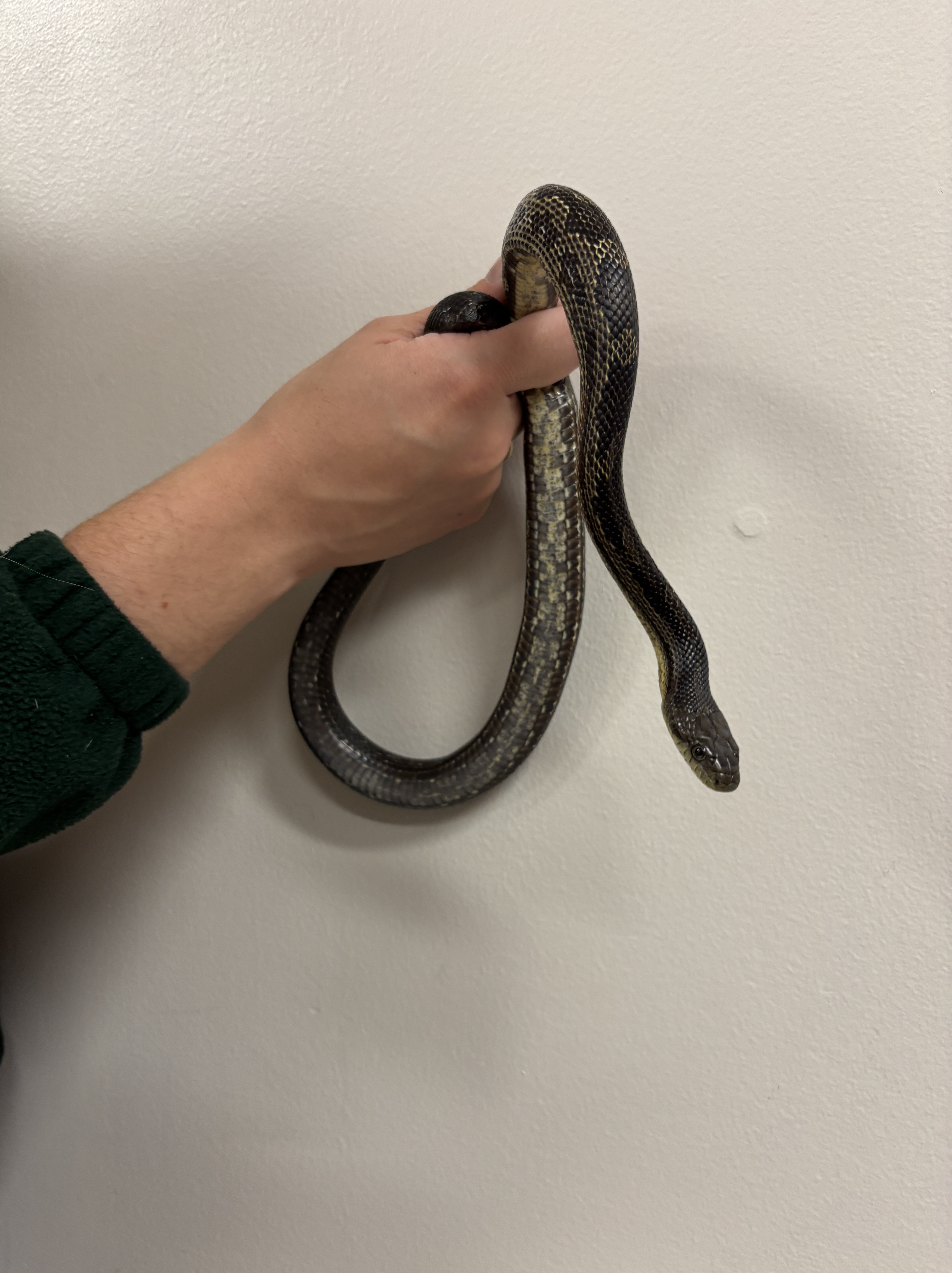 This male Gray Ratsnake was found on August 6th, 2020 upstairs in the Lally Homestead. He was 127cm long and weighed 440g. He looked like he was getting ready to shed his skin!